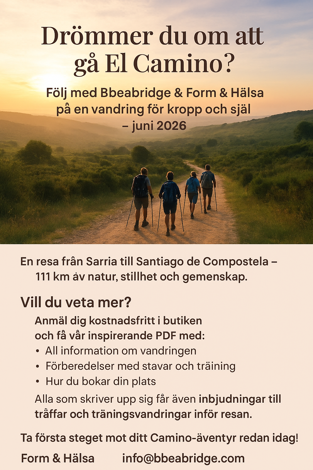 🌄 Drömmer du om att gå El Camino? Följ med Bbeabridge & Form & Hälsa på en vandring för kropp[…]